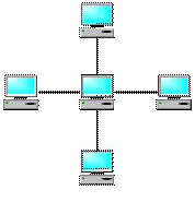 (star) - до одного центрального комп'ютера приєднуються інші периферійні