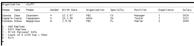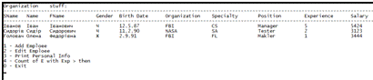 {Organization[32];Specialty[32];Position[32];Salary;Experience;:GetExperience()
