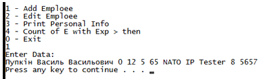 . Створити похідний клас СЛУЖБОВЕЦЬ