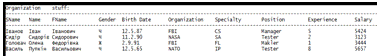 >>P.Organization>>P.Specialty>>P.Position>>P.Experience>>P.Salary;