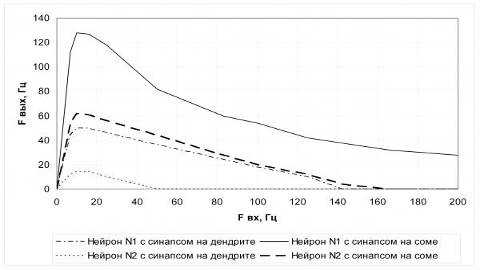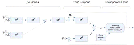 нейрона с различной структурой мембраны и расположением синапсов на ней.