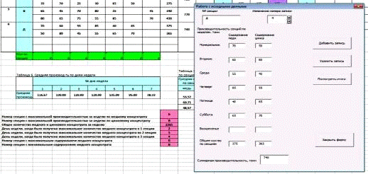 количества полученного концентрата по секциям, используем функцию СУММ мастера