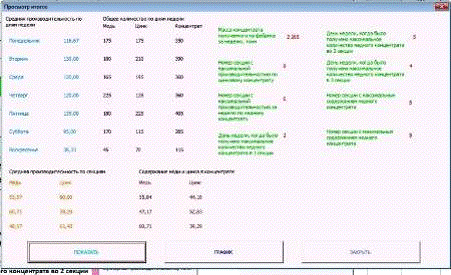 секции], [Медный и цинковый концентрат].Понедельник, [Медный и цинковый
