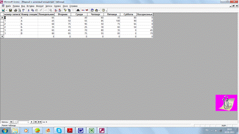которой будут храниться данные аналогичные тем, что приведены таблице Excel.