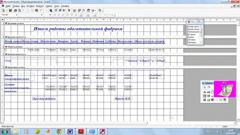группировки нет, поэтому итоговые поля вставим в отчет вручную в режиме