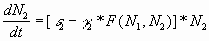 в уравнениях задачи в разделе Константы. F1 обозначим количество пищи, поедаемой обеими