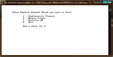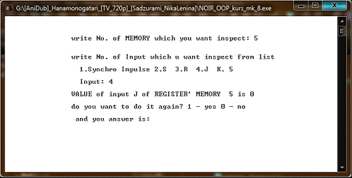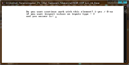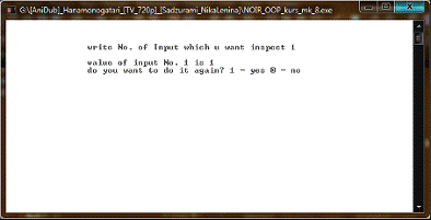 "<<osh. OutInput (z,v);(v==2)<<"\n\t\tVALUE of input S of