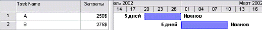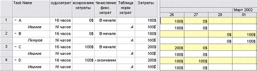 рис. 3.4.2 (файл \Cost\4.mpp). В двух первых задачах, А и В, задействованы