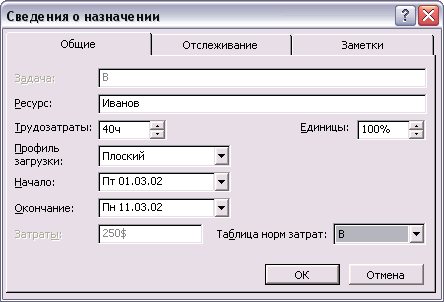 назначений, задач, а также рассчитать затраты. Стандартная ставка ресурса