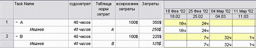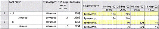 соответствии с настройками ресурсов, затраты задачи А начисляются в первый день