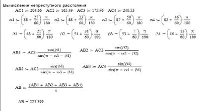 неприступного расстояния в MathCAD АВ=223.399 м.