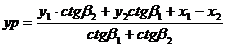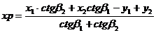 ctg(b2))= (Y1 * ctg(b2) + Y2 * ctg(b1) + X1 - X2) / (ctg(b1) +