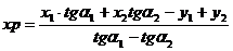 (x1*tan(a)-x2*tan(b)-y1+y2)/(tan(a)-tan(b))= y1+(xp-x1)*tan(a)