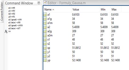 Рис. 9. Рабочее окно MatLab при расчете координаты по формулам
