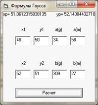 Рис. 11. Схема для вычисления координат по формулам Гаусса