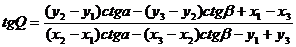 - X2) * ctg(b) - Y1 + y3)= (Y2 - Y1) * (ctg(a) - tgq) - (X2 - X1) * (1 + ctg(a)
