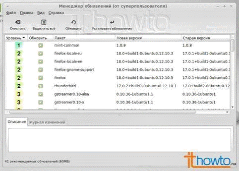 . Менеджер обновлений Linux Mint 14 уведомит и