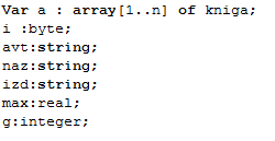 данной структуры Type Kniga=Record Avtor:String; Nazvanie:String; God:Integer;