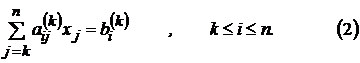 Затем при помощи второго уравнения исключим из третьего, четвертого и т.д.