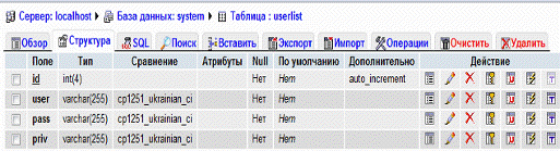 реалізації системи, розроблено структуру бази даних MYSQL, описано частини