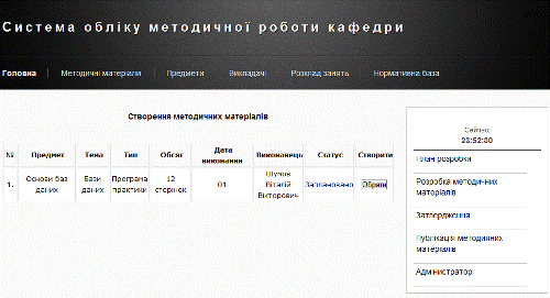 системи і моменти її реалізації. Розроблено та реалізовано інформаційну модель