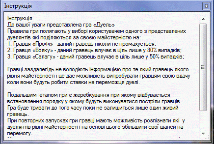багатосторонньої дуелі. Дана програма повинна відповідати наступним критеріям: