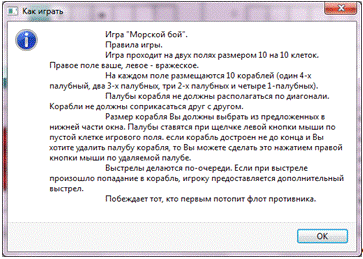 «Морской бой». В качестве языка программирования был взят язык программирования