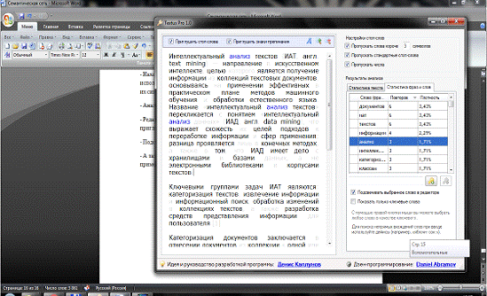статистики по тексту. Возможности данной программы аналогичны возможностям Textus Pro.