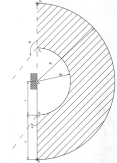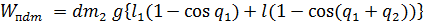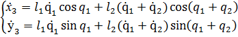 относительно оси поворота 1-го звена О1 при вытянутой руке манипулятора (q2=0)