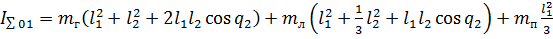 значение момента инерции манипулятора относительно оси поворота 1-го звена О1