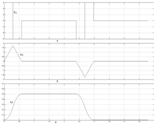 соответственно 1-го и 2-го звена манипулятора. Из графиков (в) видно, что