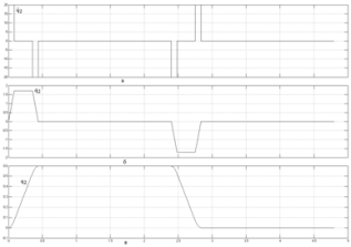 сигналов задания скорости (а), задания тока (б) и диаграмма момента (в) в СУЭП