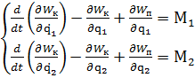 звеньев манипулятора. С помощью уравнений Лагранжа второго рода была