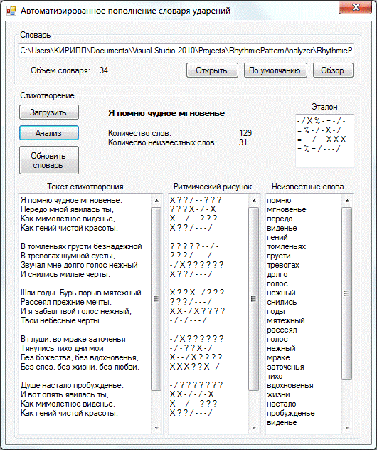 входных данных, эталонный ритмический рисунок позволит расставить ударения в
