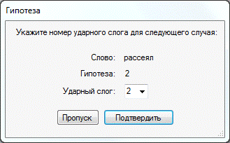 гипотезу. Пользователю необходимо определить позицию ударения без подсказки