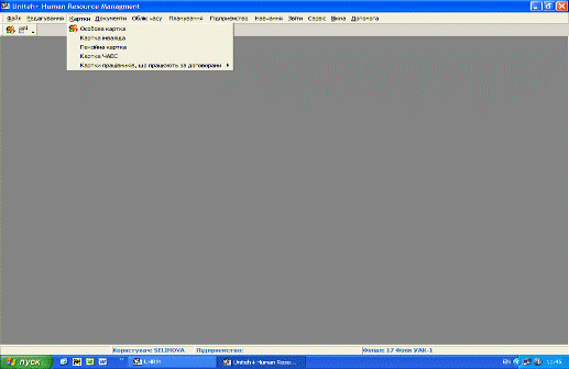 - є система автоматизованого управління кадрами Філії “УАК-1 АТ Українська