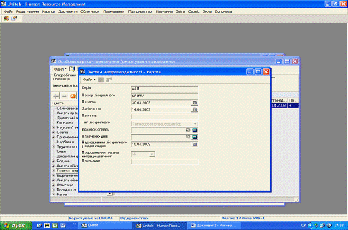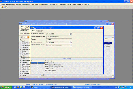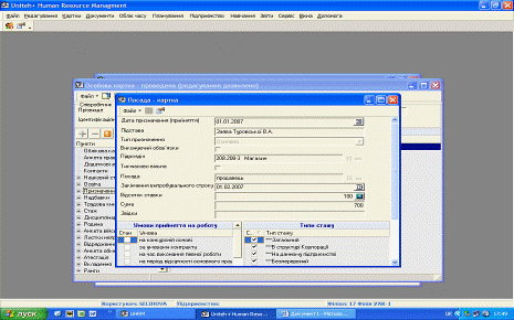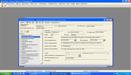 автоматизованої системи управління кадрами в системі "Юнітех+"