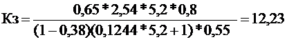 параметрах составляет Кз=12,23. Полученное по приведенным расчетам