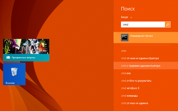 результатах поиска нажмите правой кнопкой мыши на иконке командной строки и