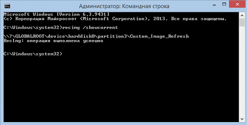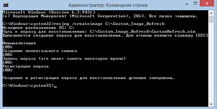 команду и нажмите Enter: recimg /createimage C: \Custom_Image_Refresh
