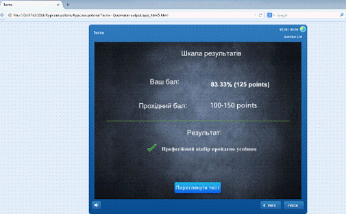 Програма дозволяє ознайомитись з відповідями та проаналізувати пройдений тест.