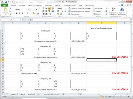 столбец свободных членов) и на строке ниже повторим расчет определителя;
