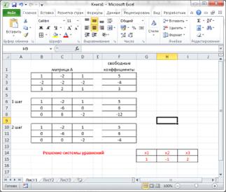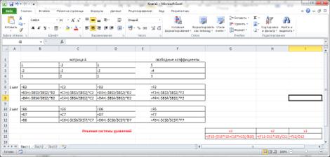 Рисунок 12. Лист расчета корней методом Гаусса в режиме