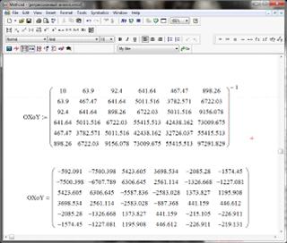 пересчета в новых переменных) Х размером 10х6 и вектор результатов опытов У;