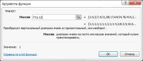 Рисунок 24. Использование функции транспонирования матриц в Excel