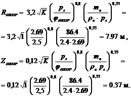 Радиусы: · разлива жидкости, R раз = 19 м; · зоны ВОК, R вок = 15.25 м; · зоны DР взр ³ 5 кПа, R DР ³ 5 = 114 м;