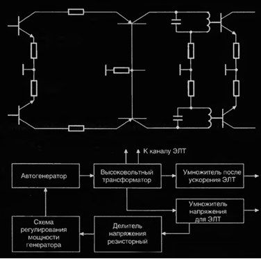 схема синхронизации и горизонтального отклонения, источник питания и