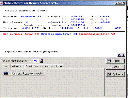 окно множественного регрессионного анализа (Рис. 28). Нажать кнопку