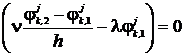 (nu*tau)/(2*h*h))(k)=(fi (i, k) - ((tau*w*(fi (i, k+1) - fi (i,