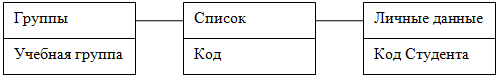 «Учебная группа» с типом связи «один ко многим». Таблицы «Список» и «Личные